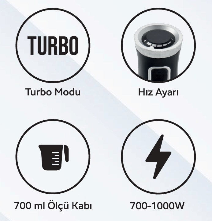 • Çıkarılabilir paslanmaz çelik blender çubuğu