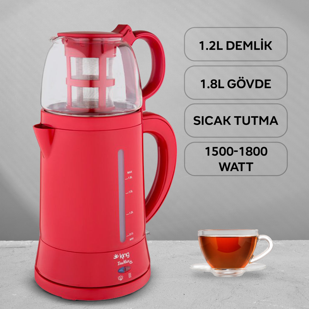 1,8 lt su ısıtıcı ve 1,2 lt demlik