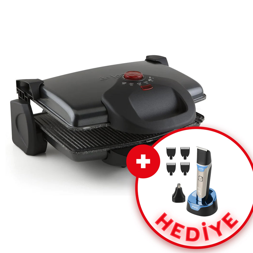 KING P637Y GRİLLMAX IZGARA VE TOST MAKİNESİ (SİYAH) ALANA KSM777 TIRAŞ MAKİNESİ HEDİYE (TAKIM)