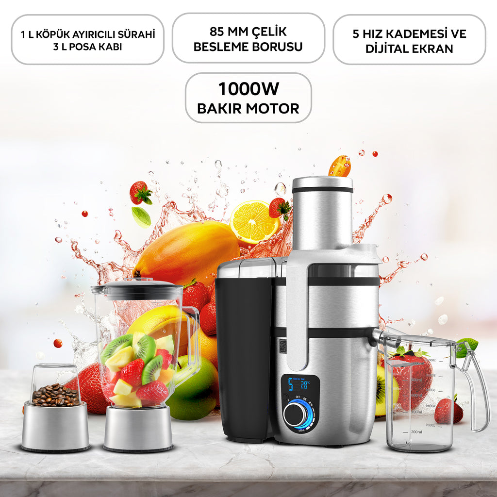 • 3in1 (meyve sıkacağı, sürahi blender, öğütme aparatı)